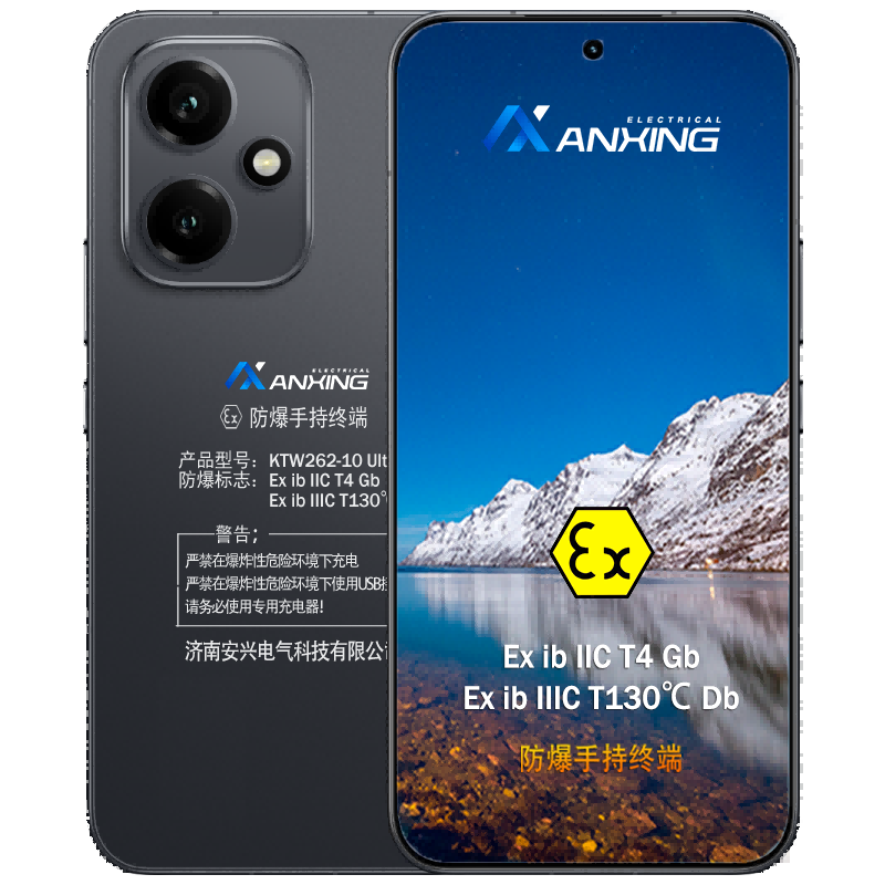 安全是防爆手机的立身之本。KTW262-10 Ultra 通过 Ex ib IIC T4 Gb/Ex ib IIIC T130℃ Db 双重权威防爆认证,可从容应对爆炸性气体与粉尘两类高危环境,从电路设计、材质选用到散热控制全方位杜绝电火花、高温等安全隐患。安兴电气更在产品中明确标注安全使用规范,强调危险环境禁用 USB 接口、需搭配专用充电器,构建“认证+防护+规范”的三重安全体系,为作业安全筑牢根基。